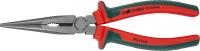 Дизлектрические длинногубцы, изготовленные из хромомованадиевой стали, применяются для производства работ с электрооборудованием, находящимся под напряжением до 1000 в. Изолирующие рукоятки обеспечивают защиту оператора от поражения электрическим током согласно всем требованиям стандарта VDE соответствующим IEC 60900, полностью отвечают требованиям ГОСТ 11516-94. Изделия имеют дополнительный захват для объемных деталей и боковые режущие кромки.