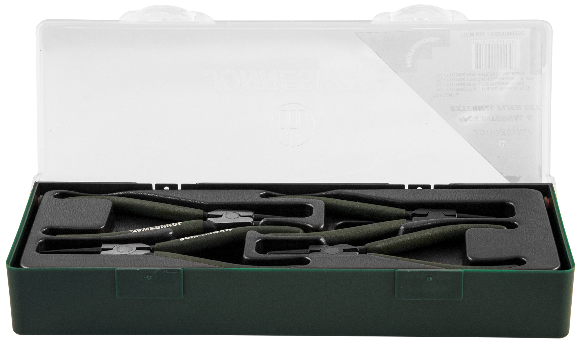 Ложемент с пластиковой крышкой, набор щипцов 7" для стопорных колец, 4 предмета. Данное изделие комплектуется полиэтиленовой крышкой, делая набор удобным для переноски и одиночного хранения вне инструментального ящика.